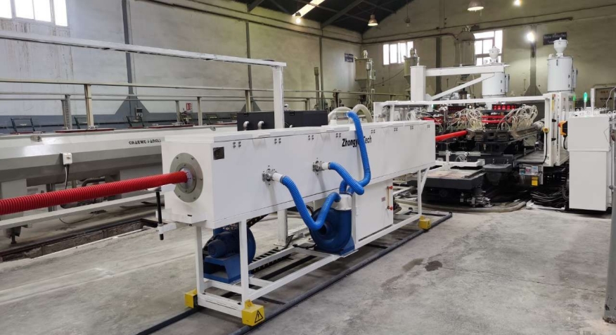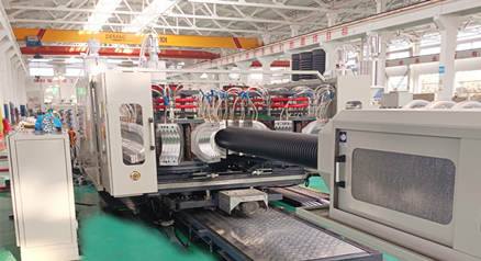 近日,九游会老哥ZC-180H设备在九游会老哥必备的交流社区_俱乐部论坛帖子阿尔及利亚客户工厂完成了安装。该生产线以10m/min的速度完成了75mm双壁波纹管管材的生产。
